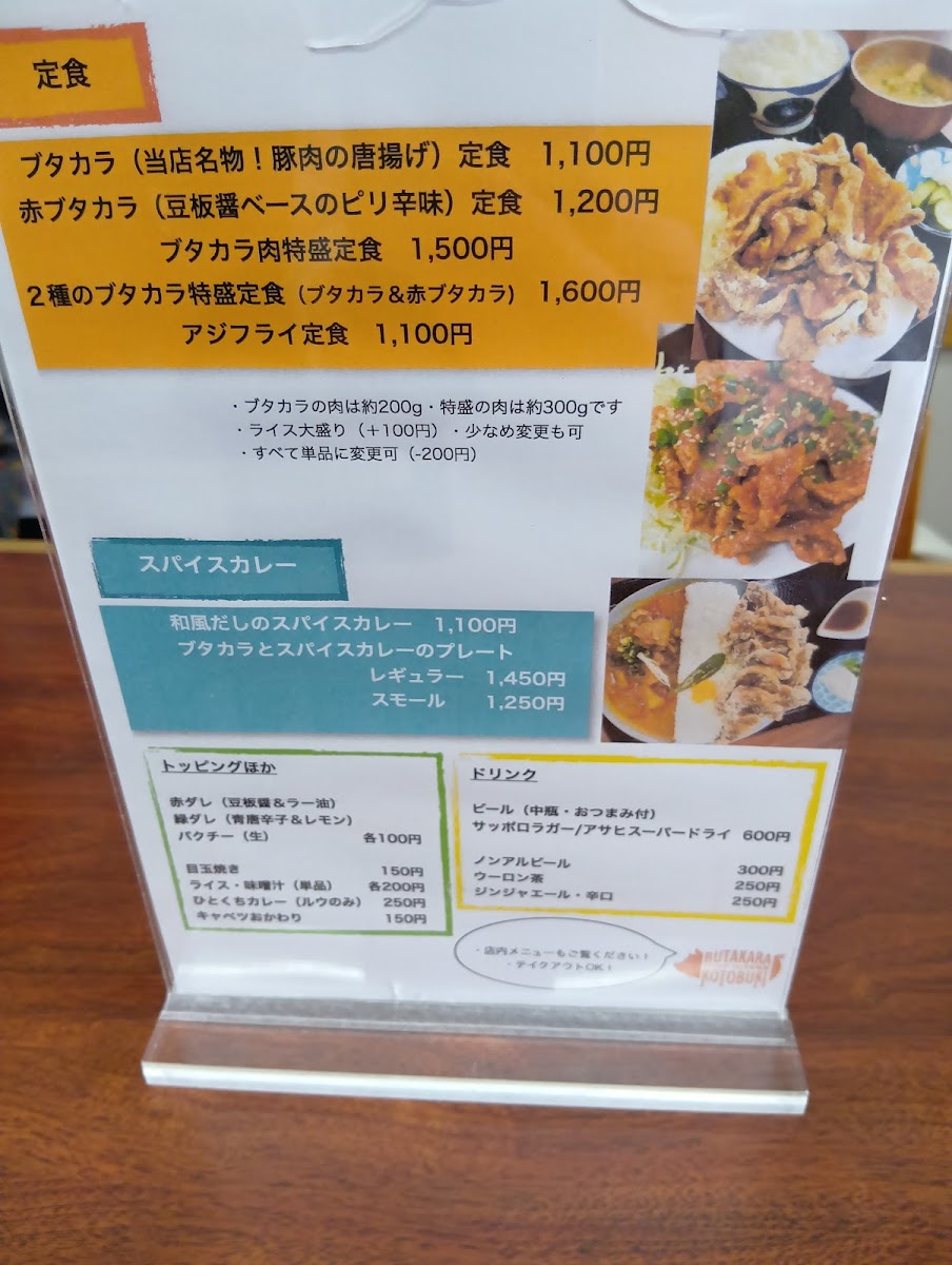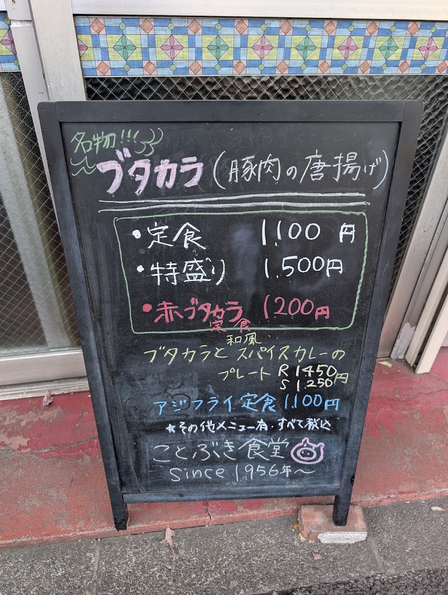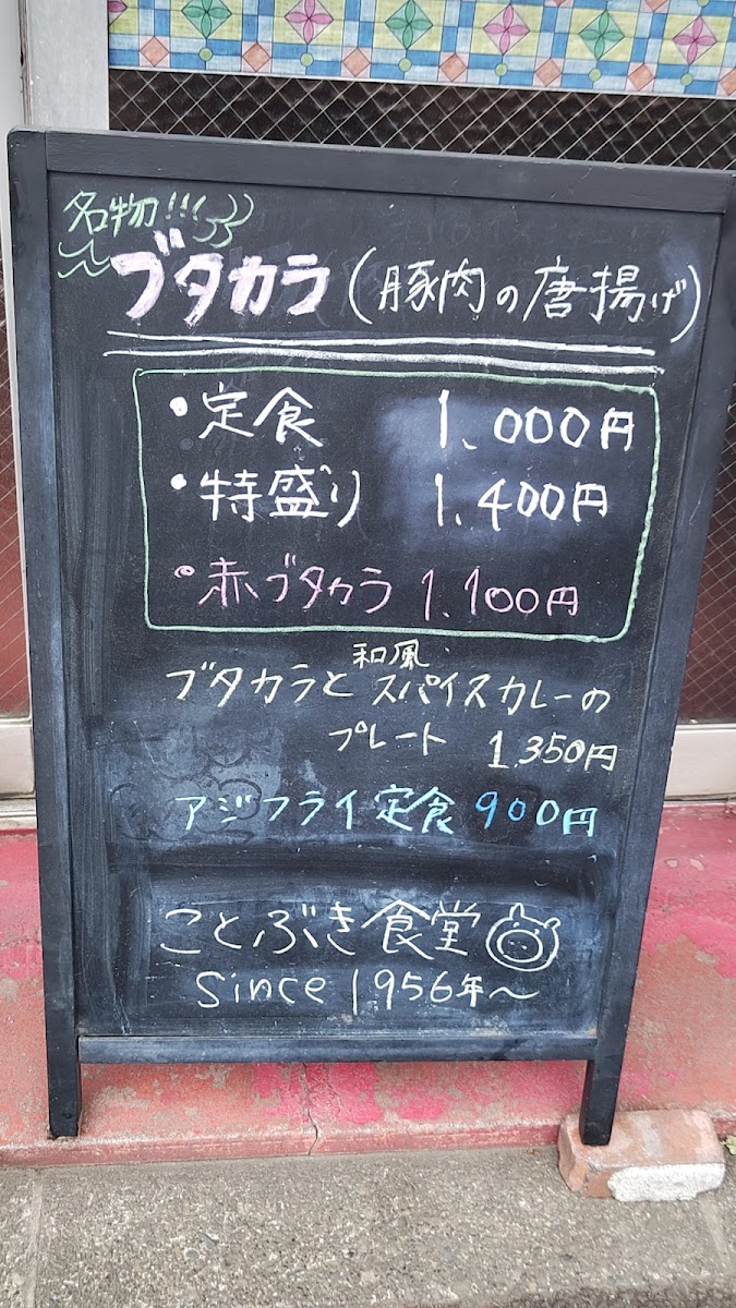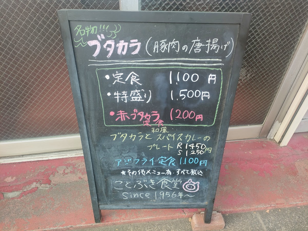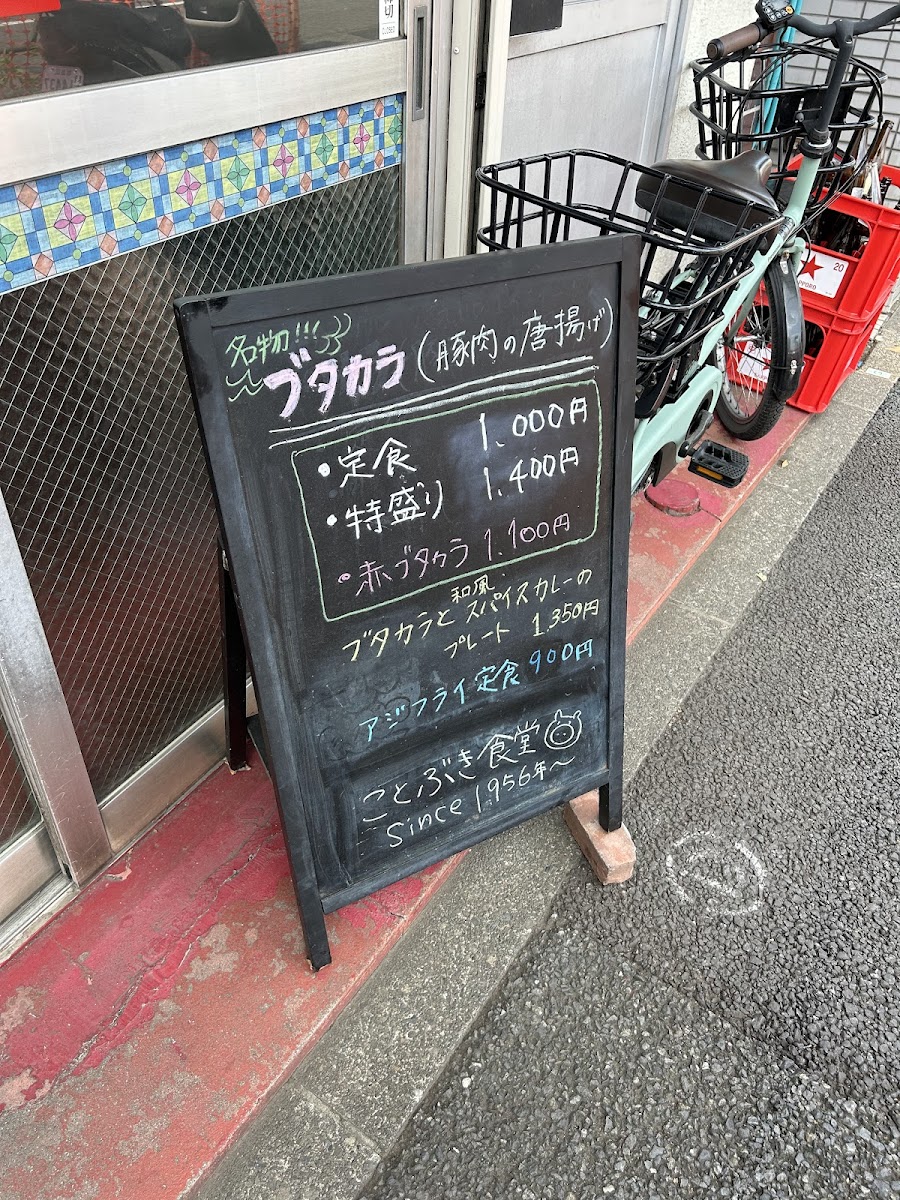 Overall, the menu at Kotobuki Shokudo leaves a strong impression as a hearty, satisfying lineup that balances classic comfort with a bit of creative flair. The generous portions of 肉特盛ブタカラ定食 stand out immediately, while the combination plate ブタカラとスパイスカレープレート offers a great way to experience multiple flavors at once. Side options like セットの半チャーハン complement the main dishes well, and classics such as アジフライ, からあげ, and 餃子 500円 provide familiar, crowd-pleasing choices. The menu also shows character through items like ニラ玉 and the flavorful 和風だしスパイスカレー, which pairs nicely with 付け合わせお新香 for a balanced meal. Even simple additions like コーラ round out the experience, and the clearly priced 和風 だし の スパイス カレー 900 円 offers good value. Altogether, the menu feels thoughtfully put together, filling, and very satisfying for anyone looking for a comforting, well-rounded Japanese meal.